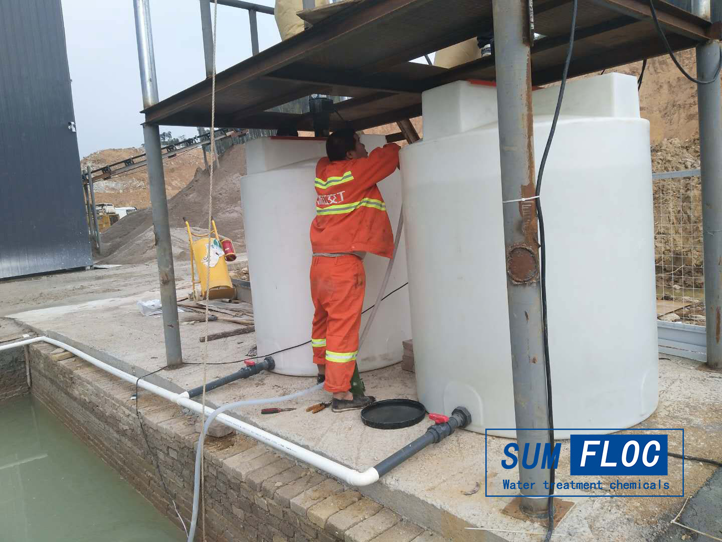 高分子污水沉淀劑絮凝劑是一種高分子有機聚合物。由于污泥污水難沉降,污染水難以排放,目前工業(yè)上使用的沉淀池法占地高,不能從根本上解決問題。高分子污水沉淀劑絮凝劑可以沉淀出洗砂過程中的泥漿。其原理是利用電荷打破平衡,然后凝聚沉淀。泥水經(jīng)脫水機處理后,泥砂去除率高,清液池中的水可直接返回洗砂系統(tǒng),減少污水排放;使用少量的泥漿沉淀劑可以發(fā)揮泥漿的絮凝沉淀效果,泥漿沉淀劑與礦山洗砂污水反應(yīng)時間短,沉淀速度快。密集的集群理中使用的絮凝劑一般為陰離子型。