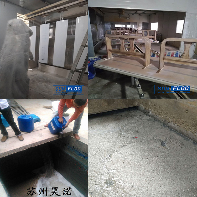 涂裝車(chē)間水簾柜里的循環(huán)油漆廢水怎么處理?近期有噴涂行業(yè)噴漆房操作人員咨詢水簾噴漆房廢水如何處理?處理噴漆房水簾循環(huán)水藥劑也就是我們說(shuō)漆霧凝聚劑,當(dāng)落噴漆進(jìn)入水簾式噴漆房與水幕相遇,會(huì)被沖刷到水池內(nèi)。而在漆霧凝聚劑的作用下可以使得漆渣慢慢地凝聚起來(lái),懸浮于水面上,易于打撈和清除。